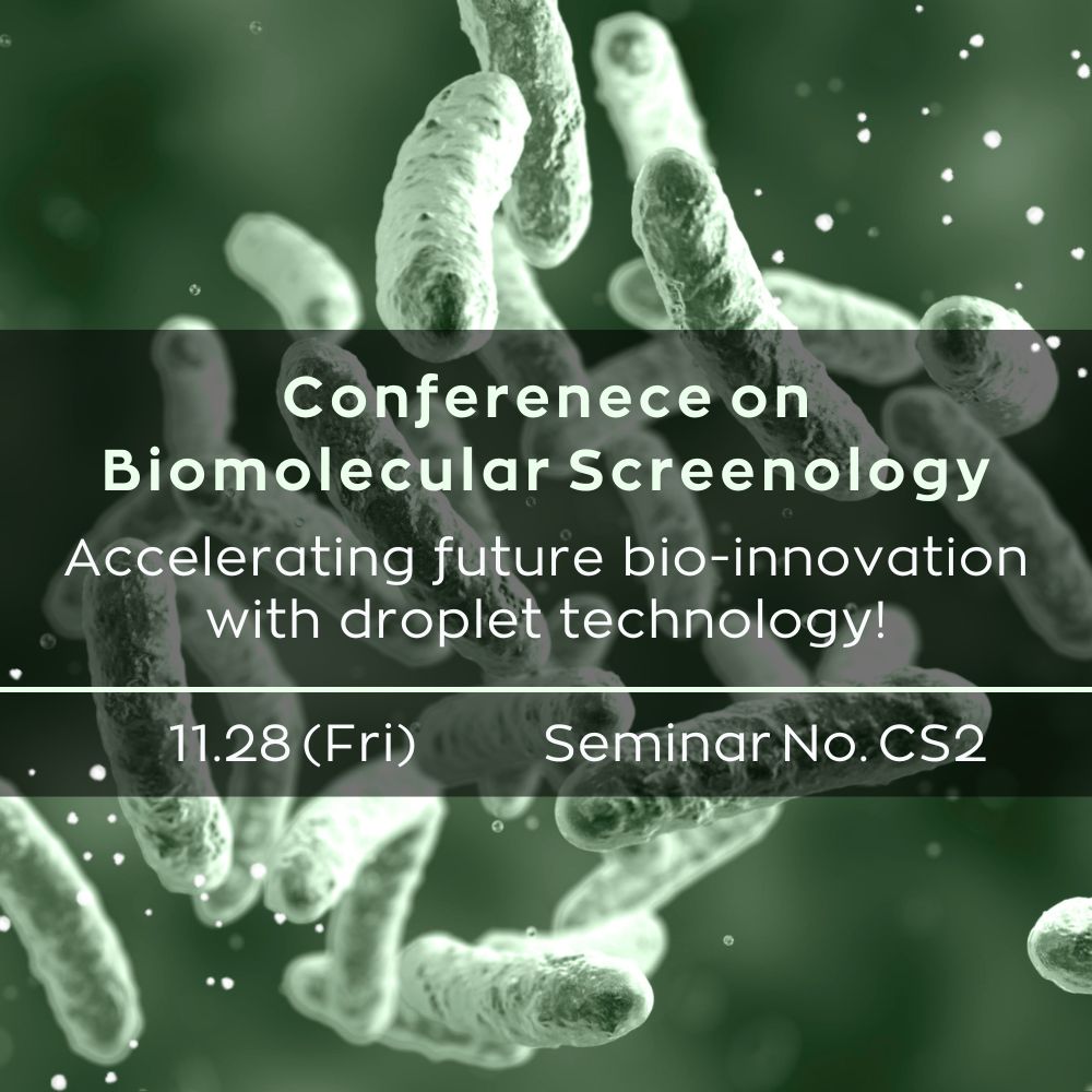 We are pleased to announce that we will be hosting a corporate seminar during the 16th Conference on Biomolecular Screenology. The event will take place over two days—from Thursday, 27 November to Friday, 28 November—at Tower Hall Funabori.